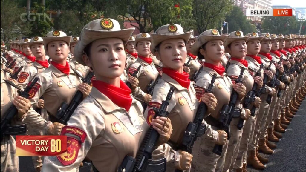 ‘भिक्ट्री–डे’को अवसरमा आयोजित यस कार्यक्रममा चिनियाँ सेनाले अत्याधुनिक मिसाइल, हवाई प्रतिरक्षा प्रणाली, बम वर्षक लडाकु विमान र ट्यांकसहितका हातहतियार प्रदर्शन गरेका छन् । बेइजिङको आकासमा १४ रंग छर्दै जे–१० एरोबेटिक्स विमानले एयर सो प्रदर्शन गरेका छन् ।